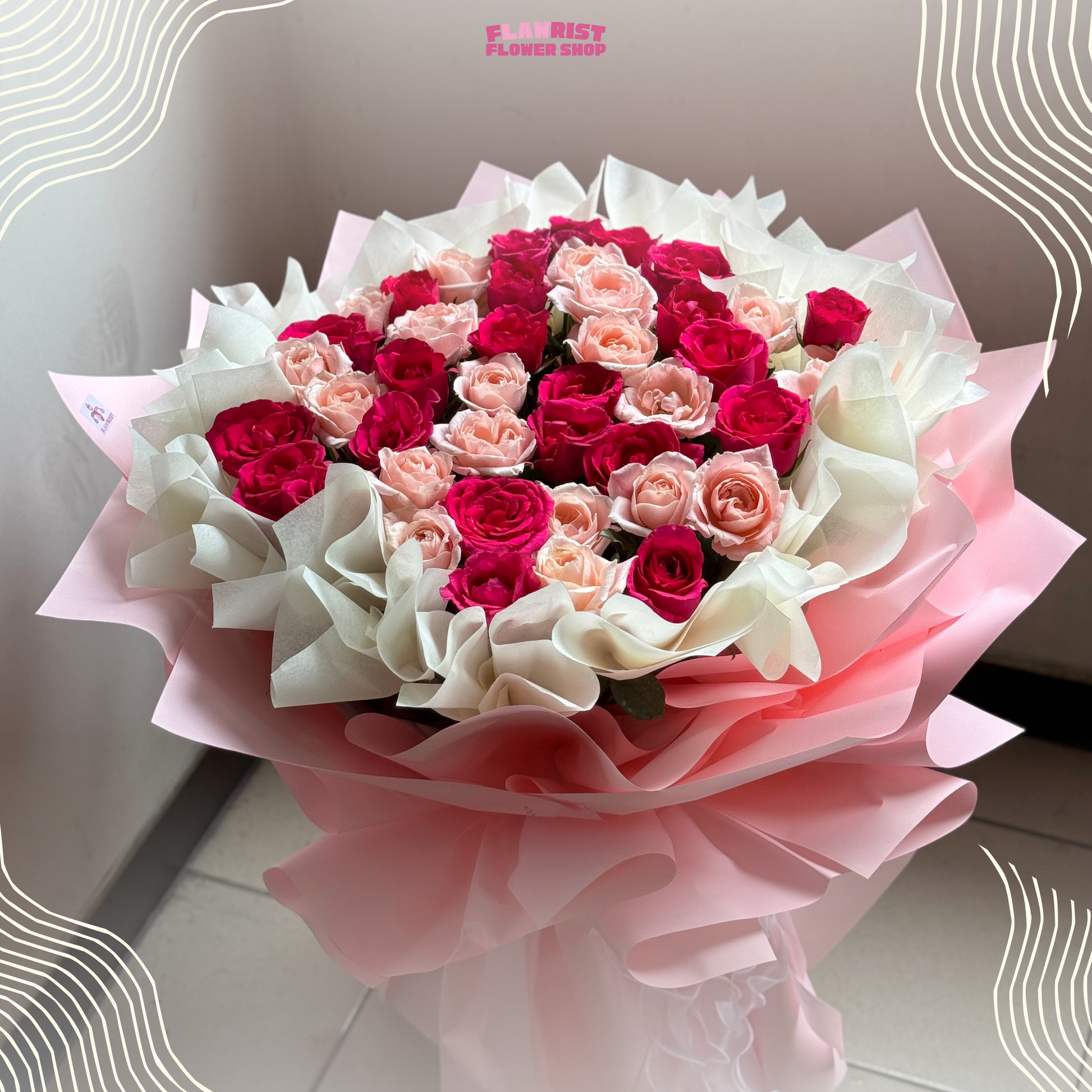 Indulge your senses with Delegata Potestas, featuring light pink and fuschia pink roses in an elegant and big display. This luxurious arrangement is perfect for expressing your refined taste and style. Bring a touch of sophistication to any occasion with Delegata Potestas.