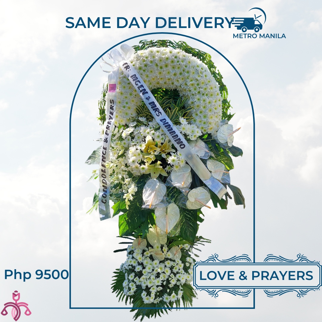 This distinguished sympathy arrangement combines premium blooms in a harmonious circular design to express profound condolences. Casa Blanca lilies provide elegant white sophistication, while rich anthuriums and chrysanthemums add depth and texture. The geometric pattern creates visual balance and symbolic wholeness during times of loss. Expertly arranged to convey respect, compassion, and enduring remembrance. An appropriate choice for funeral services, memorial events, or to extend heartfelt sympathy to bereaved families. A dignified floral tribute that honors the departed with grace.